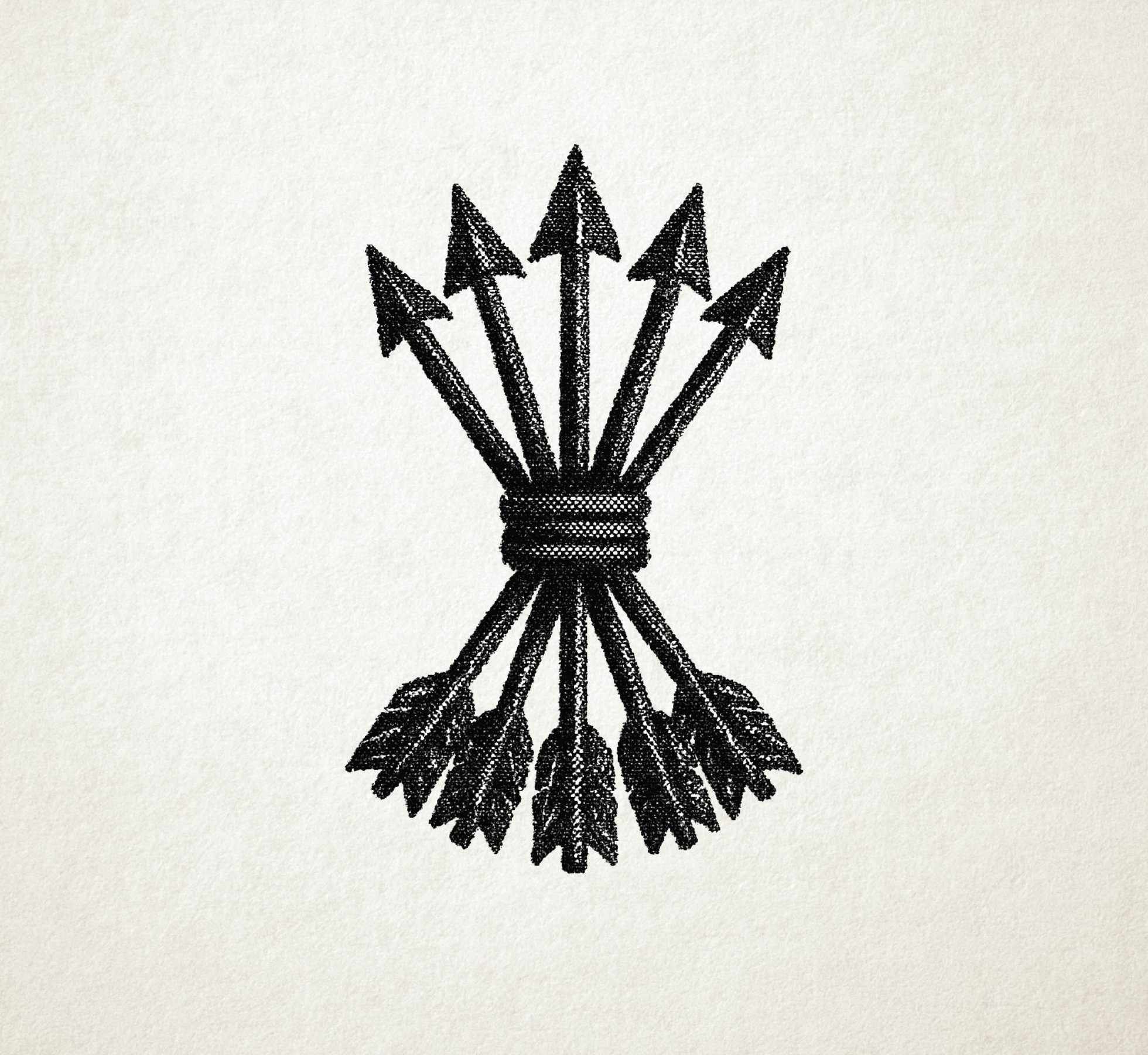 The bundle of arrows symbolizes strength through unity: individual arrows break easily, but bound together they’re unbreakable.